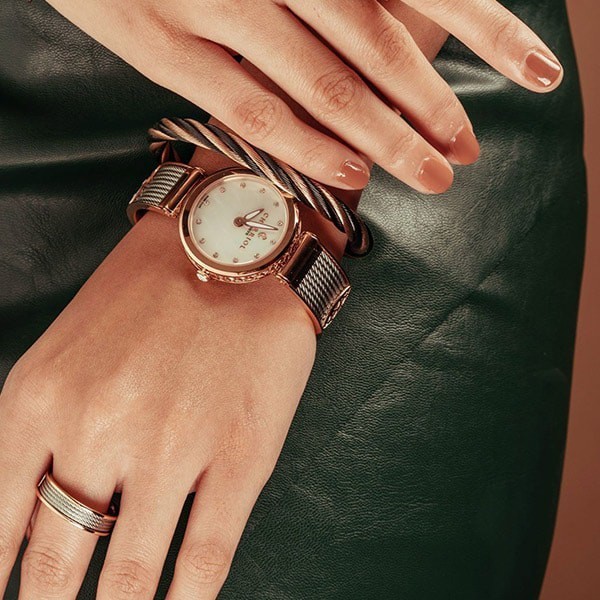 Opt for subtle, everyday style in this stunning and distinctive narrow ring from Charriol’s ever-popular FOREVER collection. Inspired by the shape of a couturier’s bobbin, four ultra-fine lines of our signature steel cable are framed by a polished rose gold-plated stainless steel edge, proudly displaying the brand’s insignia. Designed for women, men can match their partners’ style by wearing the rings from a chain for a rugged look. A contemporary Swiss-made design, epitomizing our world-renowned craftsmanship and luxurious detailing.
