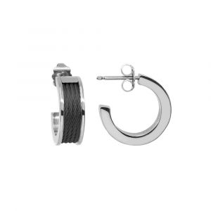 Choose a fashion-forward FOREVER with this pair of hoop pierced earrings in black and silver tones, full of cool glamour and cutting-edge design.