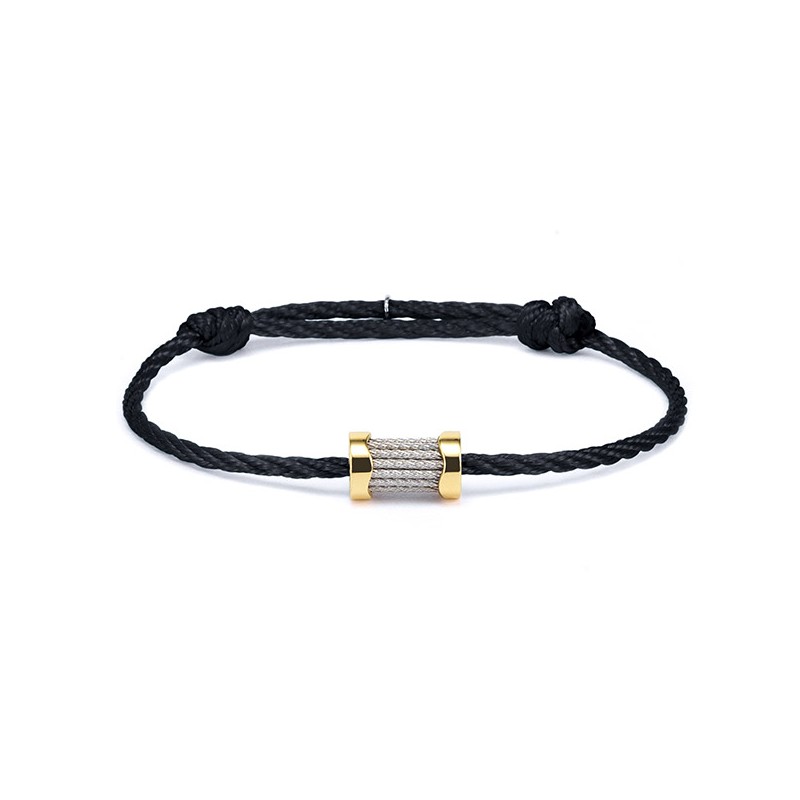 An elegant and understated new keepsake joins our ever-popular FOREVER collection. This ultra-modern black corded rope bracelet is finished with a yellow gold-plated barrel charm, decorated with our iconic steel cable. The organic shaping is inspired by the curling and arching of sea waves. Ideal for everyday, it will be especially appreciated by those who are water signs of the zodiac - Pisces, Scorpio, and Cancer - or those with a love of the ocean. Universally appealing and epitomizing Charriol’s quality craftsmanship, it’s a wearable and stylish accessory.