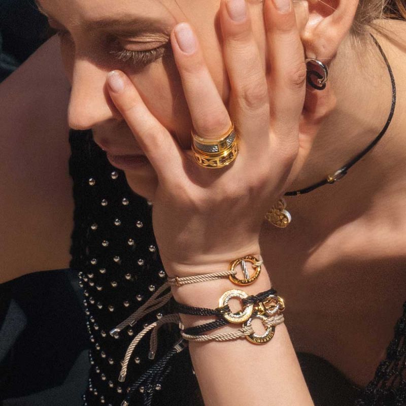 A trendy and refreshing bracelet inspired by the maritime world and its evocative shapes. The stylized porthole, made of yellow gold plated sterling silver, is completed by a 1.5mm stainless steel cable circle. Like a mooring rope, a brown string completes the resolutely modern and unisex spirit of this jewelry piece.