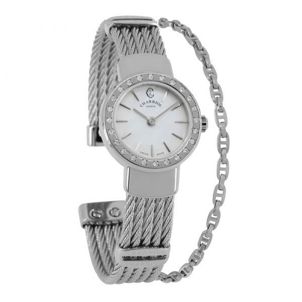 Swiss Made lady watch steel case set with 24 white diamonds 0.18cts, white mother-of-pearl dial, Swiss quartz movement. This St-Tropez model, in a mini size 20mm diameter, is a modern take on the bestseller that reflects the sharp luxury and charm of the jewel of the Côte d’Azur : Saint-Tropez. An enchanting seaside harbor that has become synonymous with French style, summertime splendour and international glamour. Once a sleepy fishing village turned artists’ enclave, continues to draw flocks of seasonal visitors delighted by its golden light, charming street corners and seaport.
