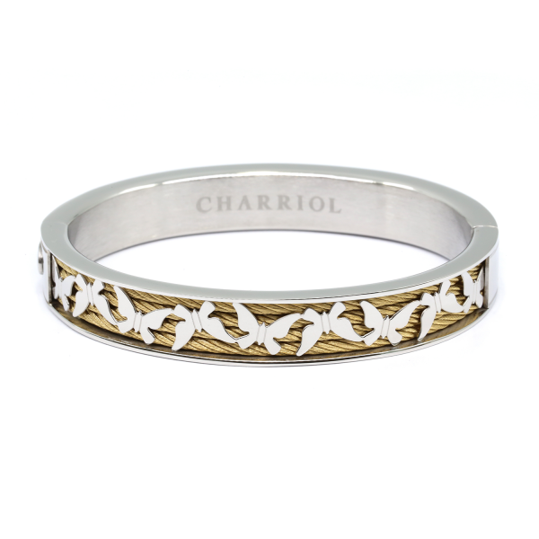 Stainless steel bangle, Yellow gold PVD cable 2mm, Bangle width 10mm