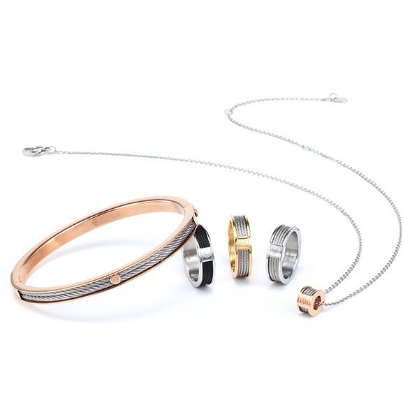 Fashion forward and with subtle insignia, the FOREVER Thin range comprizes slim bangles, rings, earrings and necklace that are highly wearable for everyday and have timeless appeal. The stainless steel cable is wound nea...