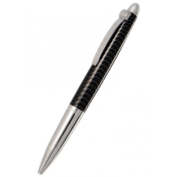 Add a dash of luxury to your desk with this sophisticated pen. The distinctive Art Deco-inspired design features an oval-shaped steel barrel, black carbon fiber, a large curvaceous clip, and engraved Charriol lettering. Certain to offer a comfortable, elegant, and luxurious writing experience, it boasts futuristic flair and fine craftsmanship.