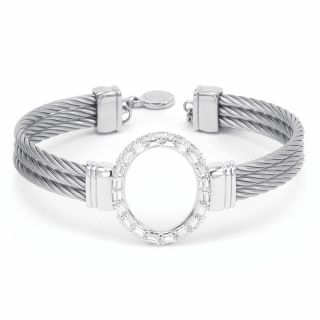 A precious ellipse, incarnation of Charriol femininity. Silver and stainless steel rose gold plated PVD cable offer this creation a special light that underlines its timeless evocative design. This jewelry piece combines finesse, elegance and originality. It showcases the Maison’s signature finely stainless steel rose gold PVD delicate 2mm cable twists around the finger to highlight a stylized ring like a precious elliptic seal of silver.