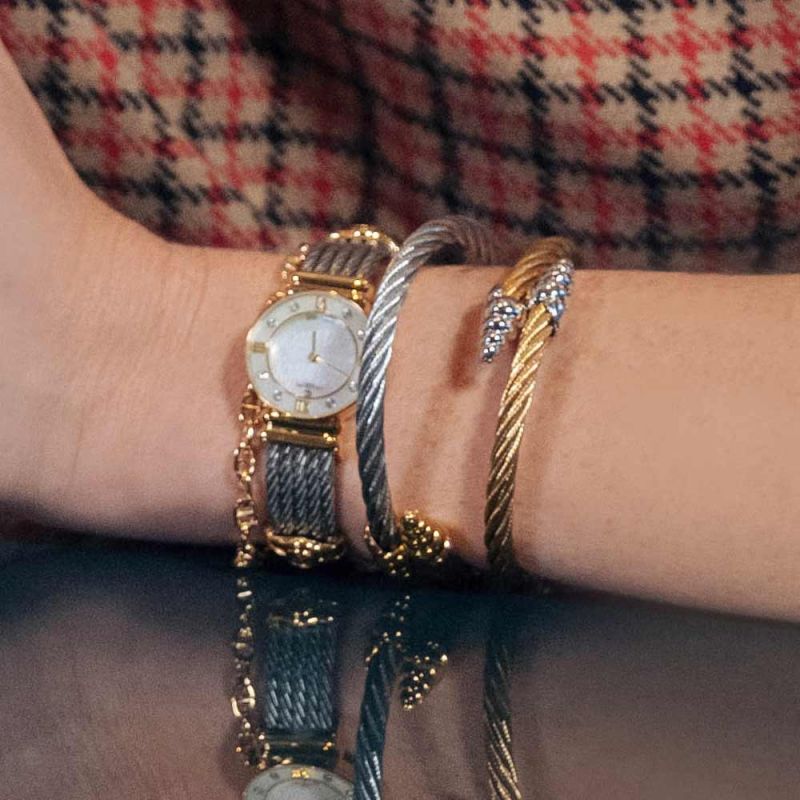 REFINED ON TANNED SKIN, THIS TWO-TONE BRACELET WILL GIVE YOUR LOOK A NEW DIMENSION, FRESH AND FREE, FROM DAWN TO DUSK