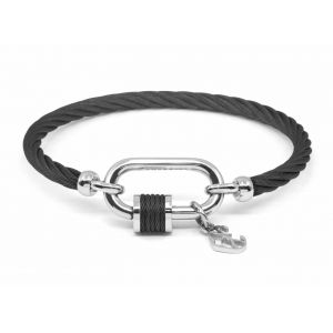 Black look for this steel carabiner-style lock (with black PVD cable decor) capping a striking black PVD steel cable 4mm diameter. Dimensions of the lock 24(W) * 13(H) * 8(D)mm, size S (15.5cm) to XL (18.5cm).
