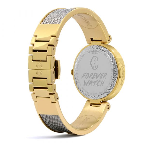 The Forever watch collection is inspired by the successful Forever jewellery line. A composition of bracelets, rings, earrings and necklaces featuring Charriol's unique cables interwoven into a rigid structure, much like the thread in a tailor's spool. Retaining the brand's cable DNA with a youthful look and a price tag of less than US$1,000, the Forever watch is ideal for gifting and entering the world of Charriol.